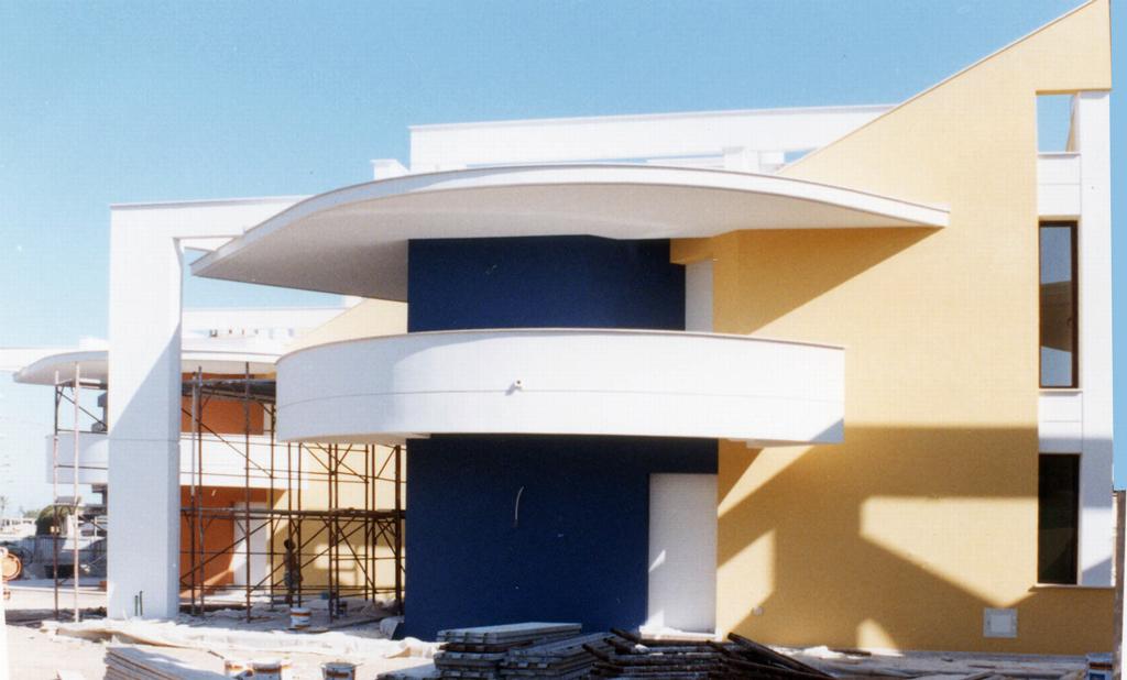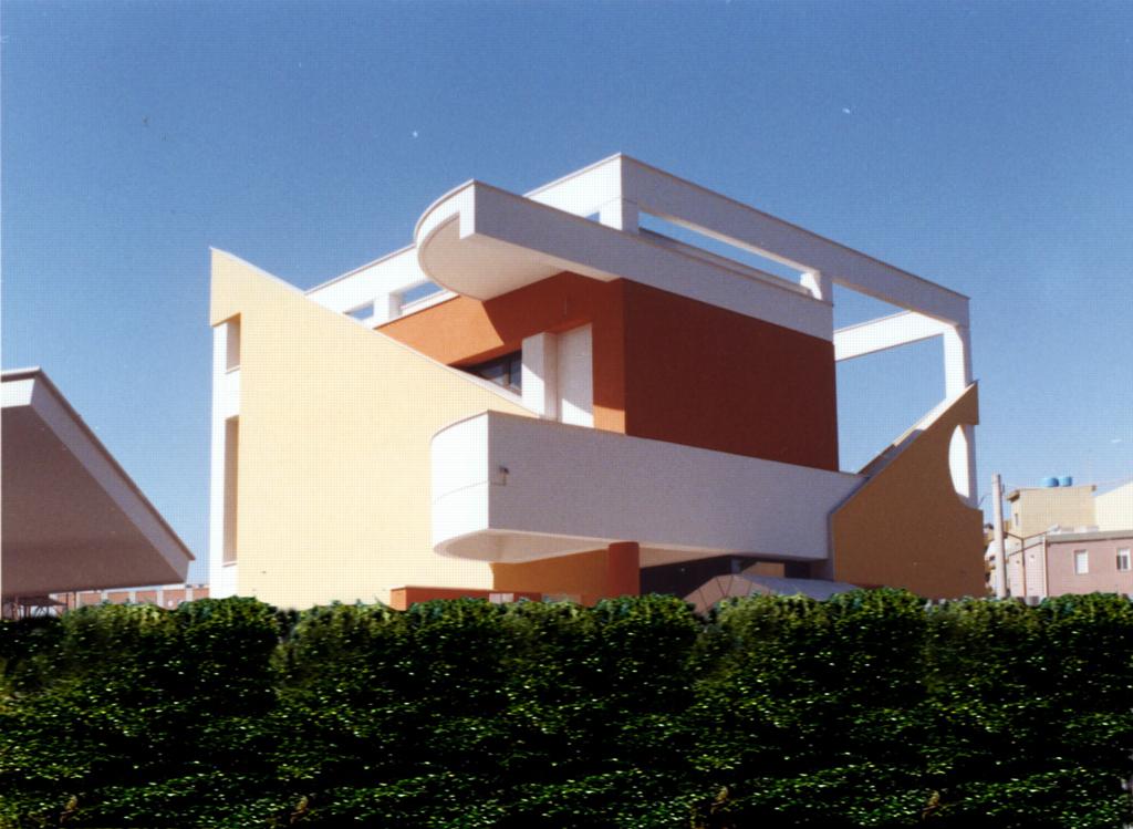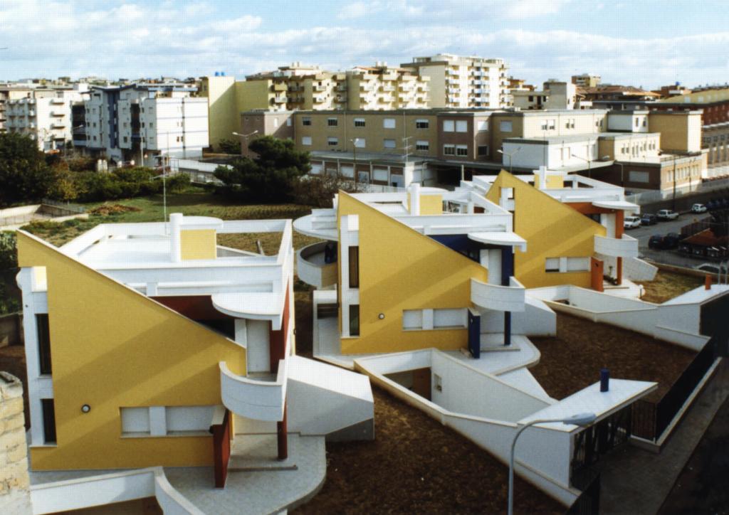 viario. Tagli inclinati e terrazze aggettanti dinamizzano i volumi.